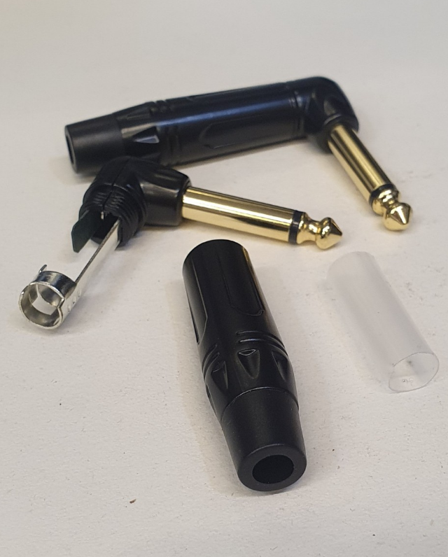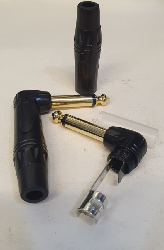 Jack thân đồng mạ vàng,24 k, vỏ kim loại màu đen, điểm tiếp xúc tốt, dùng trong khu vực có góc hẹp. đuôi jack có kẹp giữ dây chăc chắn. đầu cắm jack 6.35 mono đực đen đầu mạ vàng, góc 90 độ, dùng cho dây đường kính ≤6mm