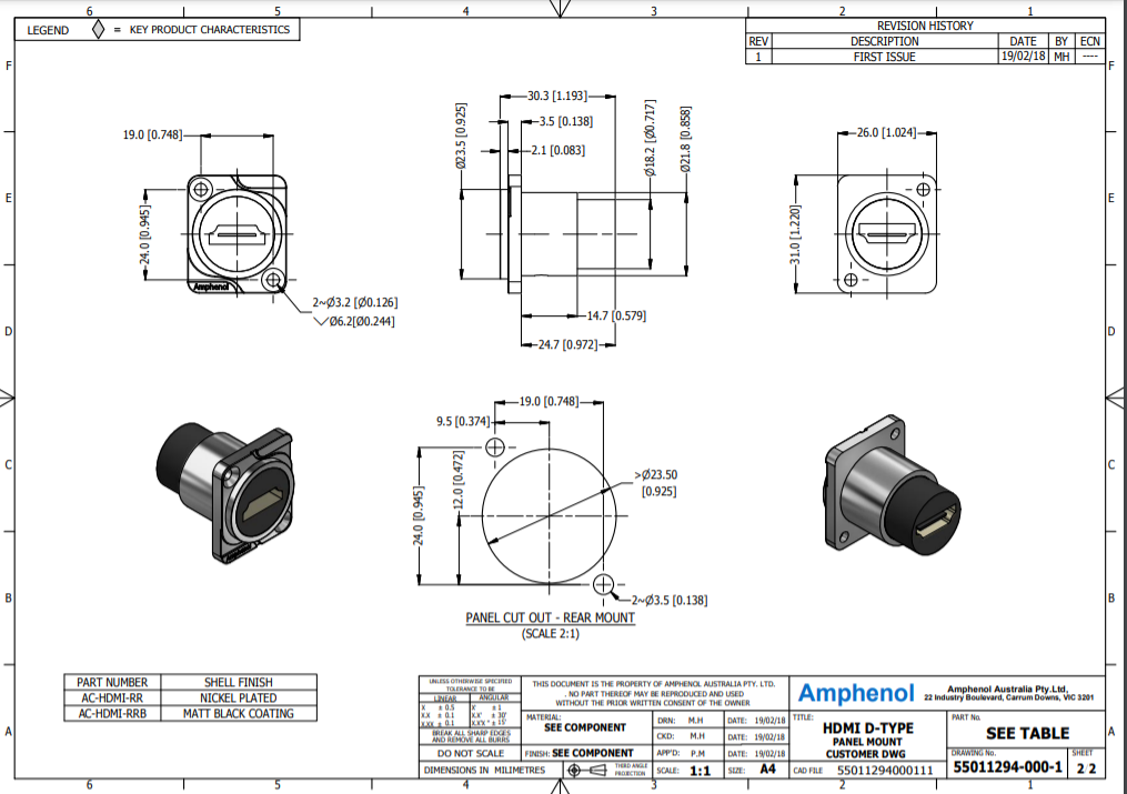 Jack HDMI, HDMI panel, ổ HDMI, ổ HDMI amphenol