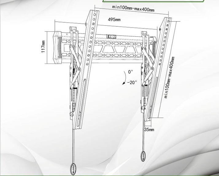 Gíá treo. dùng cho tivi 22-55 inch . Kích thước thanh dọc: 40cm, thanh ngang 49.5 cm, chất liệu sắt. Trọng lượng 2.4 kg.