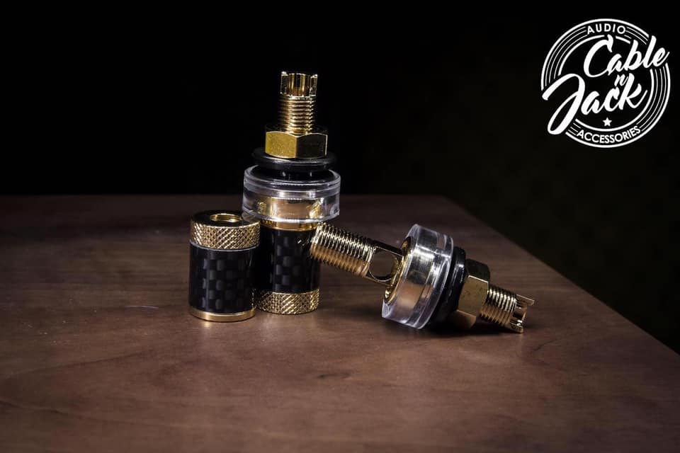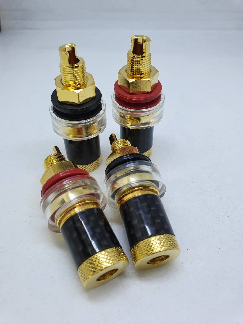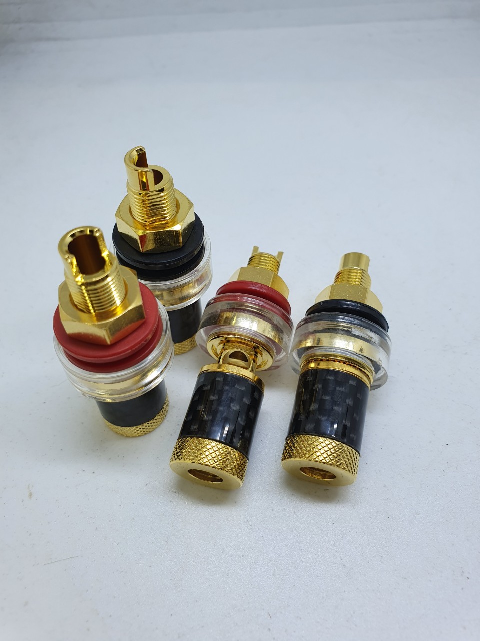 cọc loa đài loan , jiac thân đồng mạ vàng 24 k, tiếp xúc tốt. vỏ ngoài mạ cacbon mang đến sự sang trọng cho đầu jack. jack thích hợp dùng cho âm thanh gia đình, rạp chiếu phim mini HIfi audio