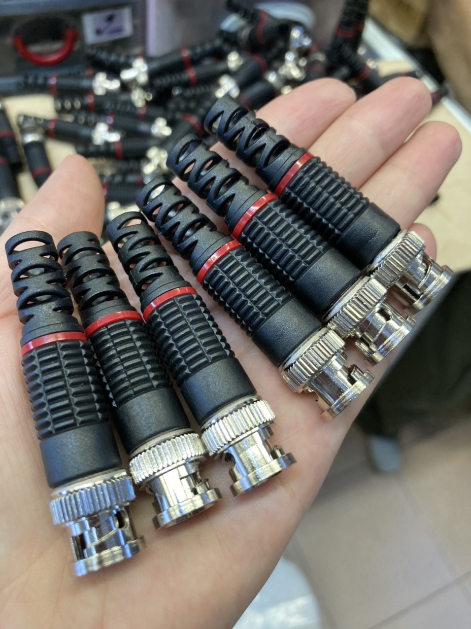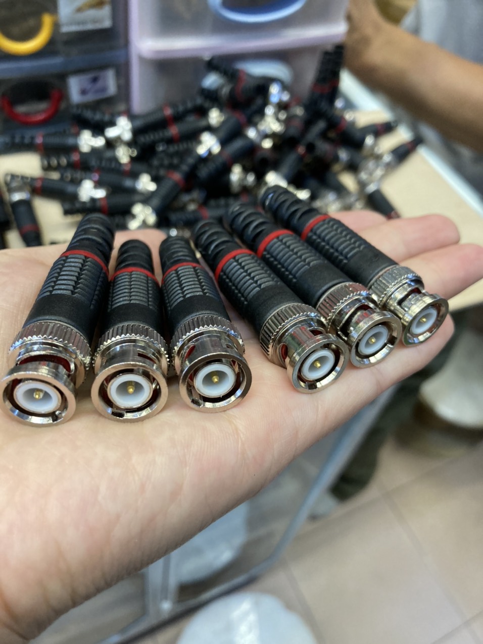 bnc chuôi nhựa đen, dạng bắt vít, thân là nhựa cứng chắc chắn, điểm tiếp xúc đồng mạ vàng, vít dày không bị tuột dây, hàng thích hợp dùng cho thi công. Hàng có số lượng lớn để bán buôn.