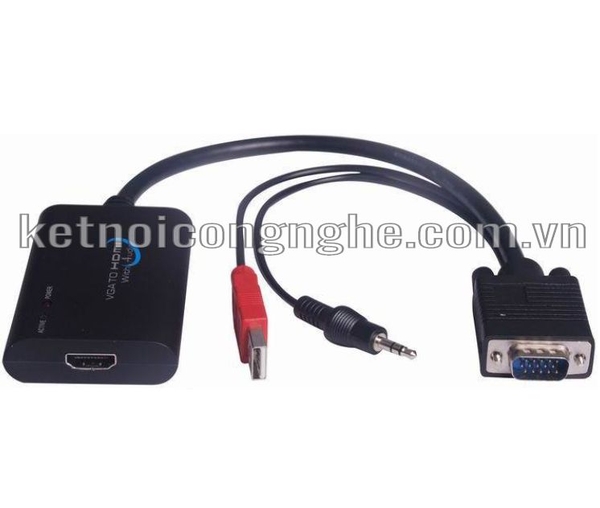 - Đầu Input tín hiệu VGA và cổng âm thanh 3.5mm, đầu Out tín hiệu HDMI