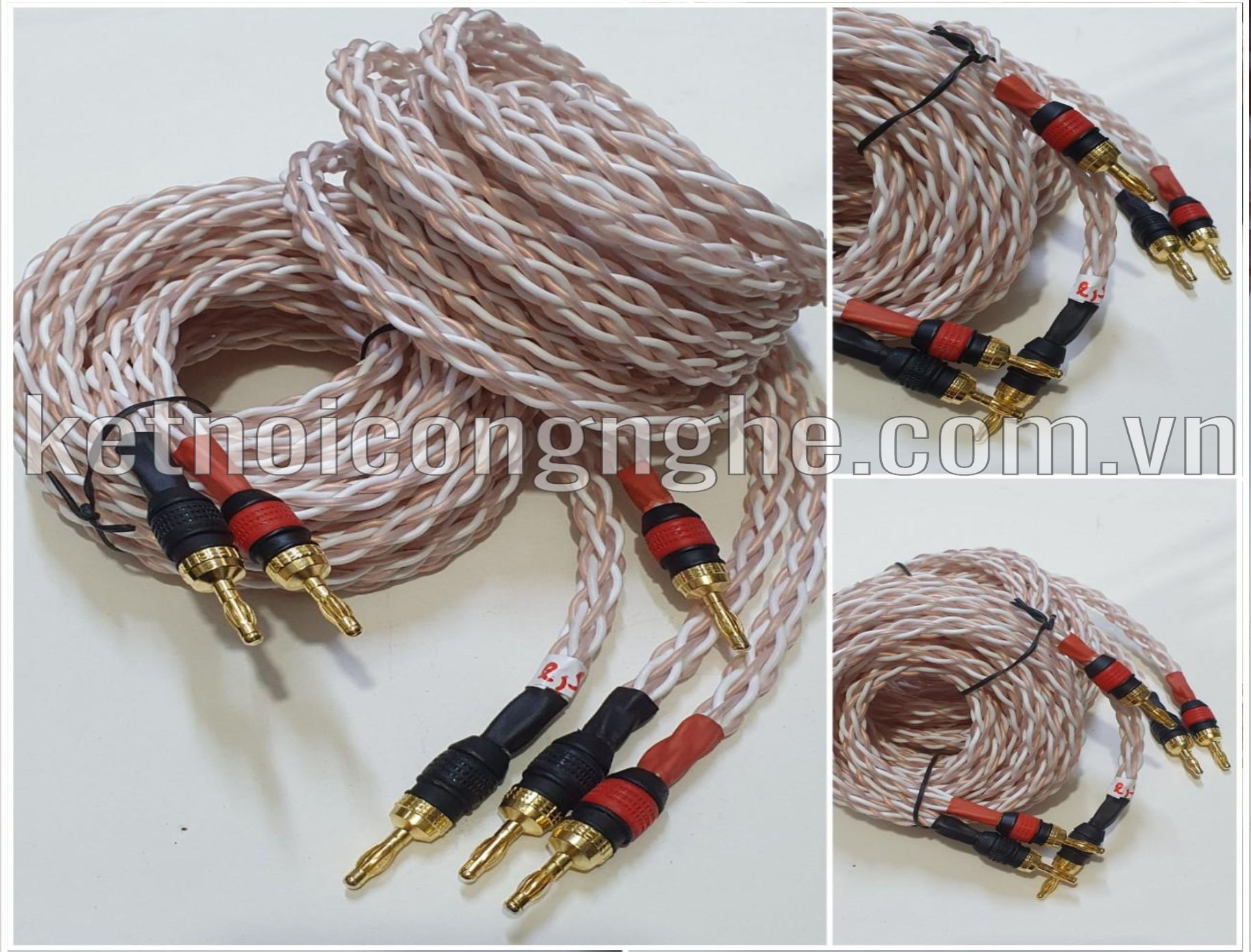 Dây 8 lõi sợi đồng, bện vào nhau, đầu jack bắp chuối hoặc mỏ chim đều là đồng mạ vàng mang lại âm thanh sắc nét.