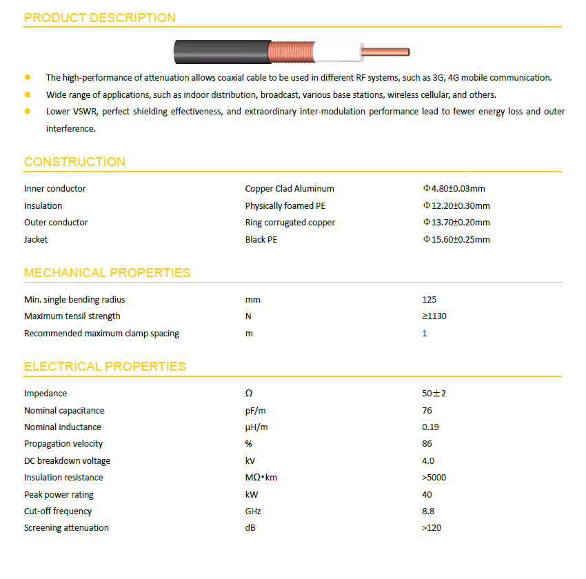 thông số kỹ thuật : 4.80mmđồng bọc nhôm +12.20mmFPE+13.70mm ống đồng , đường kính : 15.60mm nhựa PE, màu đen ,trở kháng : 50ohm. hàng nhập khẩu có giấy tờ CO, CQ rõ ràng. Nhà cung cấp Hansen - Tq