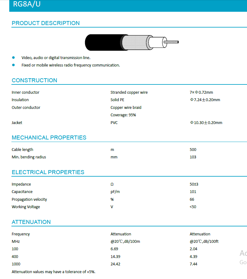 7×0.72mm (2.74mm) Cu+7.24mmSPE+192x0.12mm lưới đồng độ che phủ (95%) đường kính 10.30mm PVC, màu đen, trở kháng: 50ohm