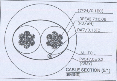 thông số:(7*24/0.1 BC+LDPE2.7)*2C+dây tiếp mát 7/0.16TC+lá nhôm +PVC 7.0MM ( nhựa LDPE mềm và dai hơn nhựa thường.