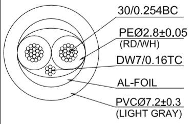 2*(30/0.254+PE2.8)+dây tiếp mát 7/0.16TC+