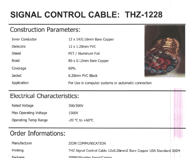 cáp tín hiệu đk: 12x0.28mm2
