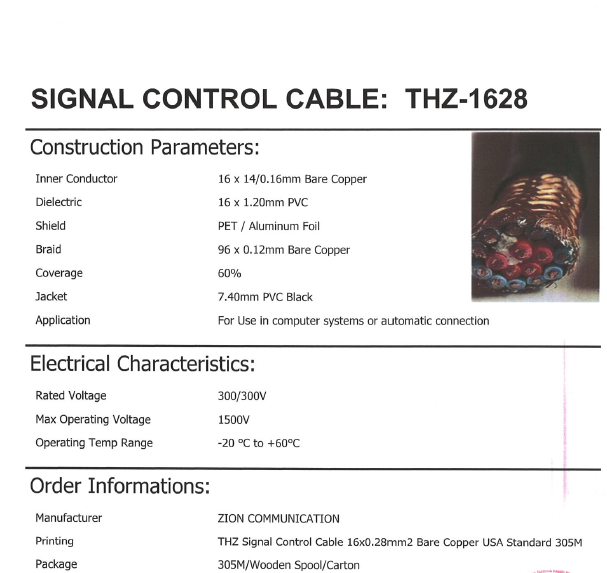 16x(14/0.16mm đồng+1.20mmPVC)+lá nhôm+96x0.12mm đồng lớp bện(60%)+ đường kính7.40mmPVC, màu đen