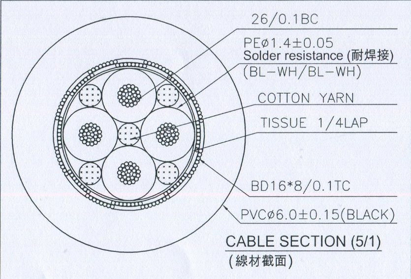 cáp tín hiệu microphone 24AWG , [2*(26/0.10)BLUE XLPE+2*(26/0.10)WHITE XLPE]+lớp lưới 16*8/0.10 đồng tráng thiếc