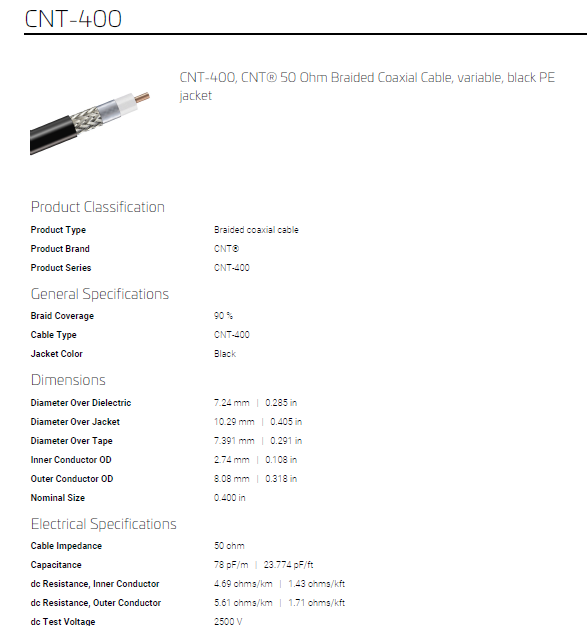 - Tên sản phẩm: Cáp cao tần CNT-400: dây tiêu chuẩn ANDREW. MỸ