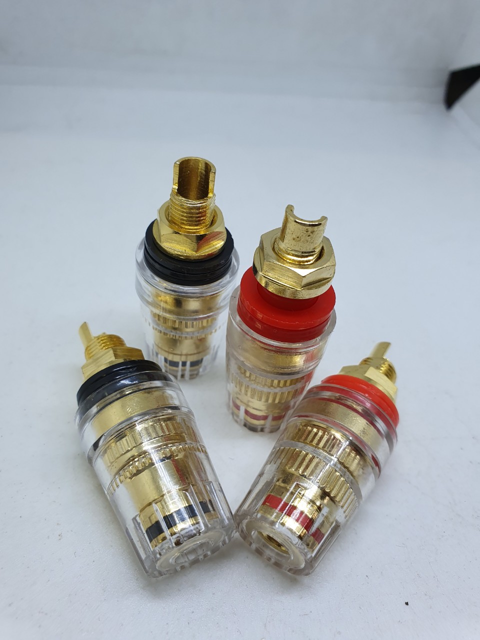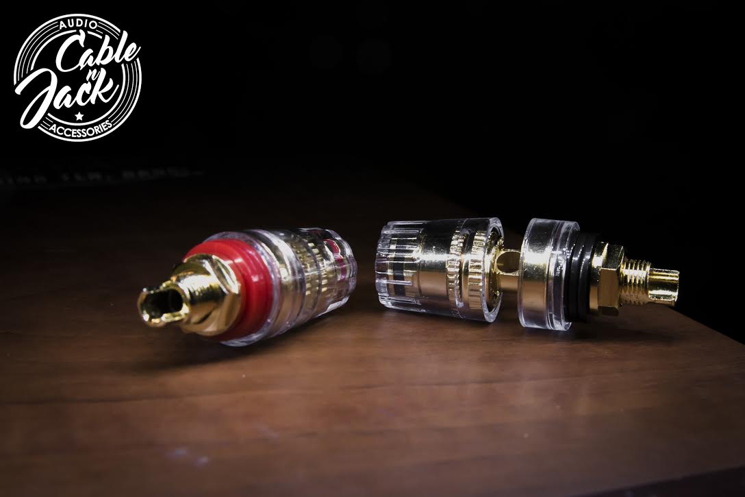 cọc loa thân đồng mạ vàng, vỏ ngoài nhựa trong suốt, thích hợp cắp báp chuối , dùng cho âm thanh gia đình, phòng hát