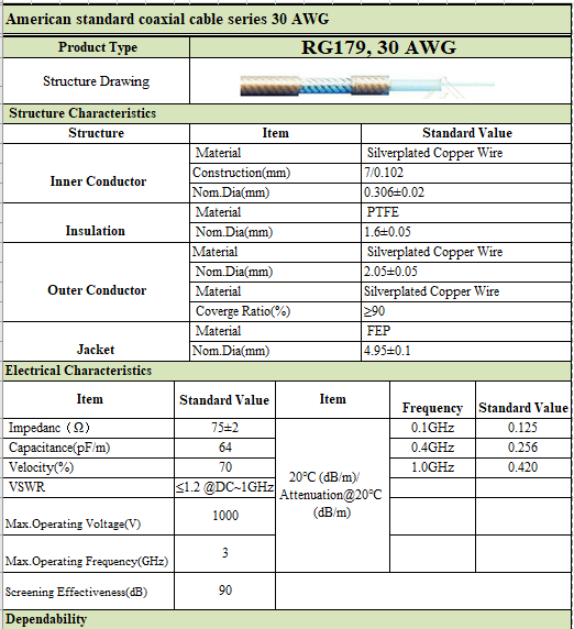 7x0.102mmSPC+0.036mm PTFE+ Braid SPC 90%)+2.54mm FEP,Brown 75 ohm 30 AWG