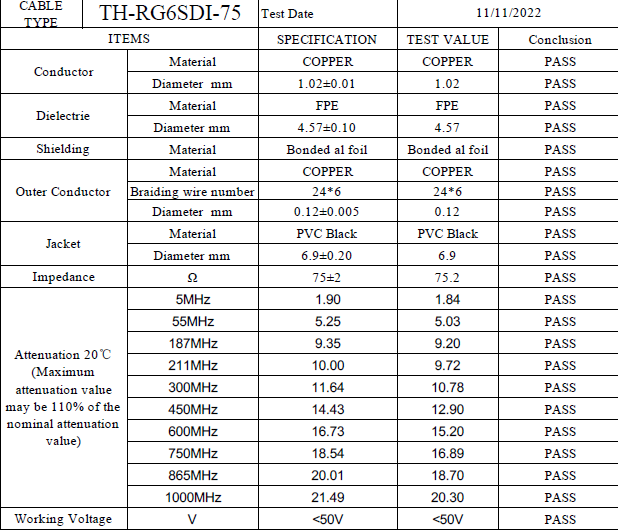 lõi đồng cứng, có lá nhôm, có lưới đồng bện độ che phủ 95%. Đường kính ngoài 6.9mm . Trở kháng 75Ohm.