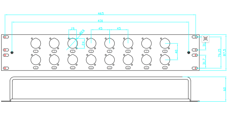 Thanh sắt 16 lỗ, 2 hàng dùng trong hộp sân khấu để bắt tủ jack XLR, ổ loa, ổ 6 ly..... Thanh panel