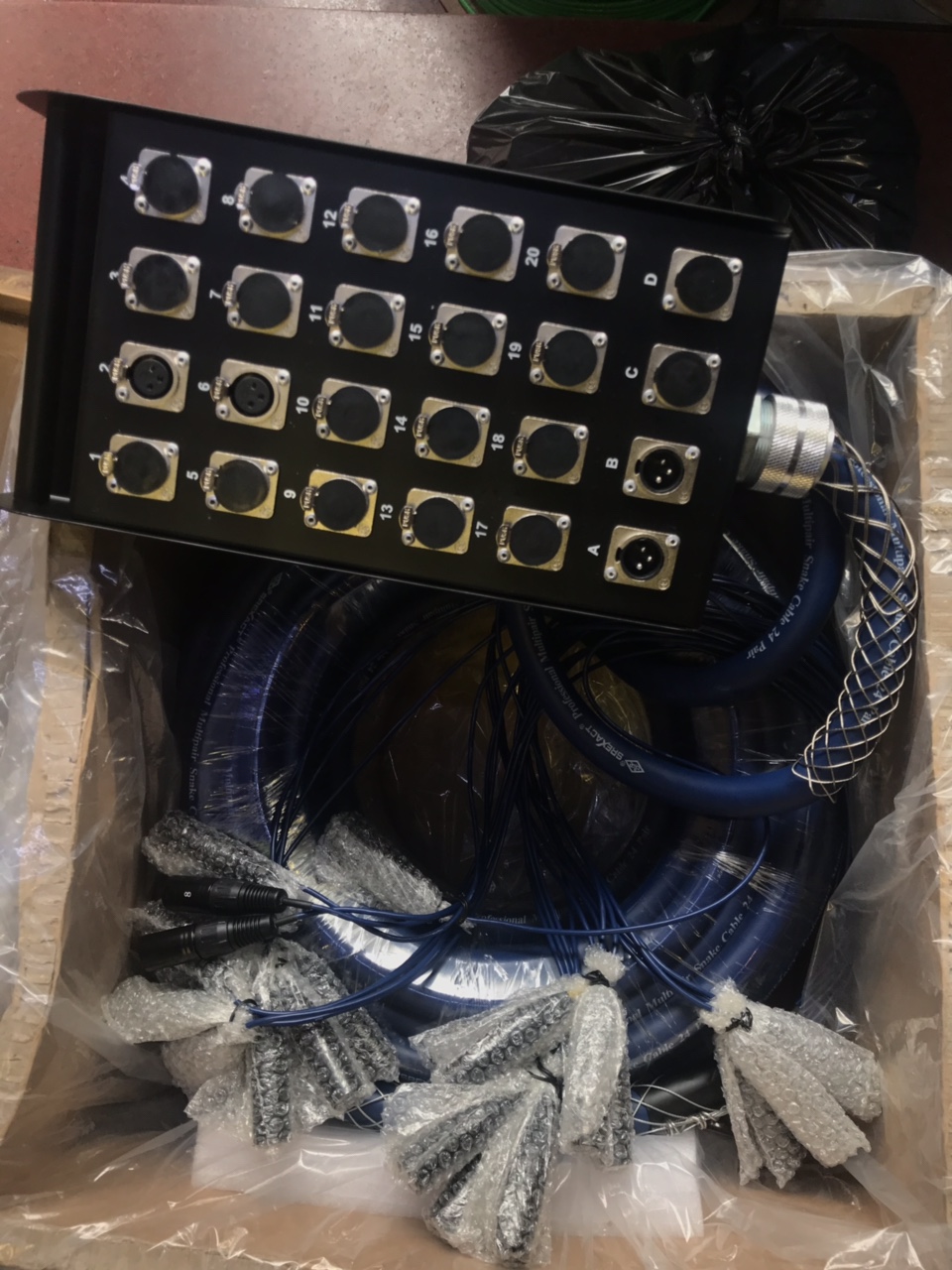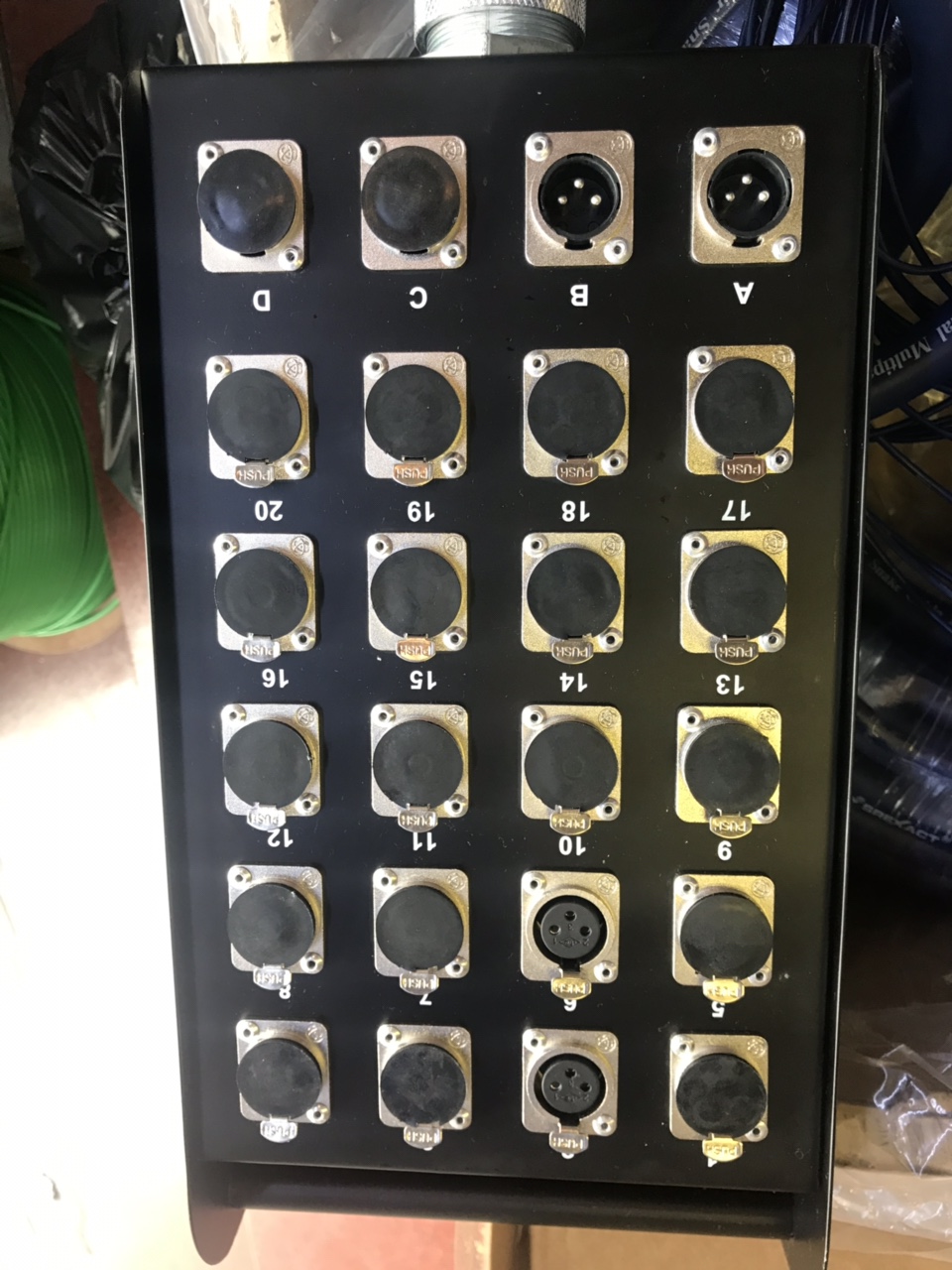 - Hộp STAGE dài 30.5m, với 20 jack XLR cái + 4 jack XRL đực trên hộp và 24 jack XRL trên dây, gồm giá đỡ, cuộn giữ dây. Với kẹp giữ dây dê dàng cho việc di chuyển và cuộn dây. Tăng độ bền và thời gian sử dụng cho thiết bị
