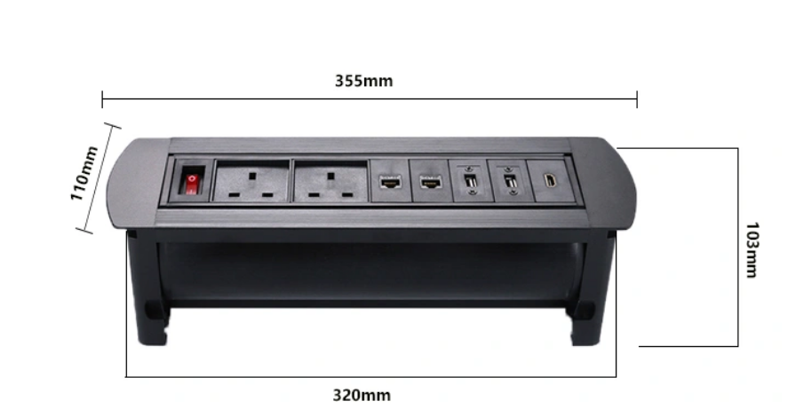 ổ cắm điện hay ổ nguồn điện, có 2 ổ cắm nguồn đa năng+ 2 ổ cắm mạng+ 1 hdmi+ 1 usb, với bề mặt thiết kê trang nhã, có thể di chuyển tùy chỗ khi không dùng đến thì đậy nắp lại vừa chống bám bụi bẩn vừa an toàn và mang lại sự gọn gàng ngăn nắp cho bàn làm viêc, Bề mặt của ổ làm từ thân nhôm hợp kim đúc thành khối rất chắc chắn và thời thượng. các hạt ổ đa năng ở bên trong có thể thay thế