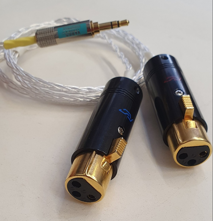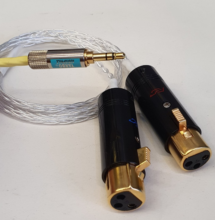 Cặp dây là sự kết hợp giữ 1 đầu jack 3.5 Yarbo , jack thân đồng mạ vàng ra 2 đầu jack XLR jack do Đài Loan sản xuất.