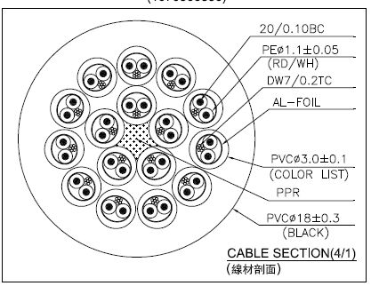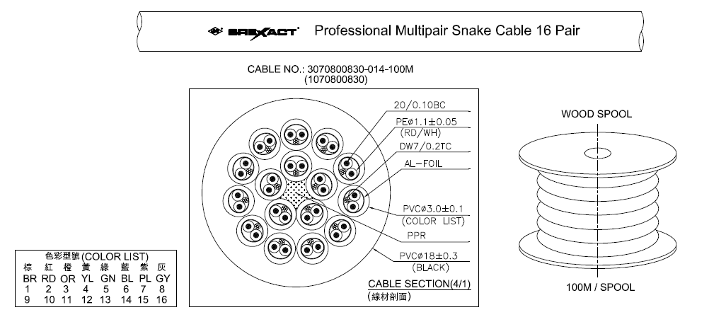 Cáp tín hiệu audio 16 lõi ,lô gỗ , 2*(20/0.10), 16C, 26AWG, O.D=18MM,