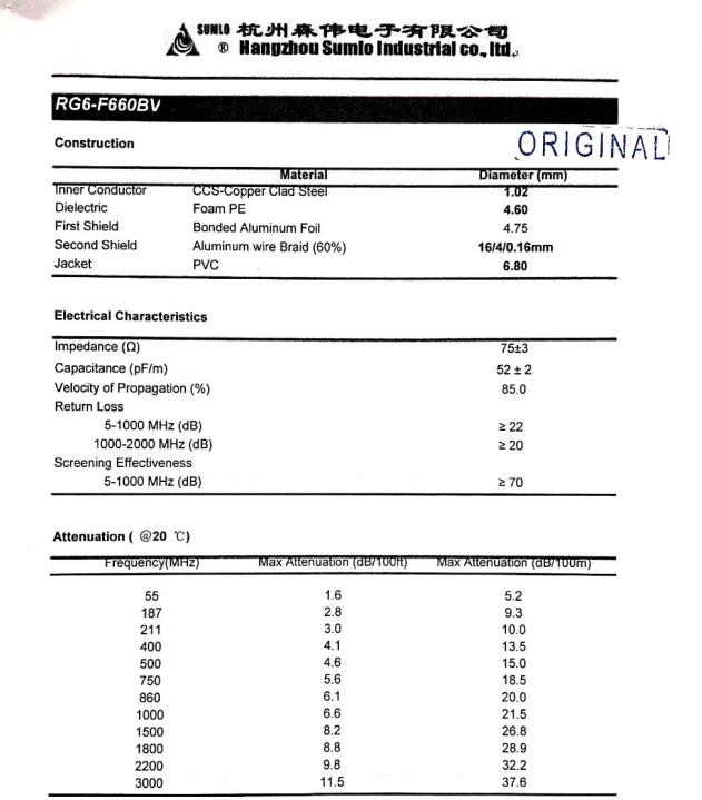 - Tần số: 50-1000MHz, Trở kháng : 75ohm. Cuộn 305m lô gỗ hàng SUMLO. Hàng có số lượng lớn đẻn bán buôn. Hàng sumlo