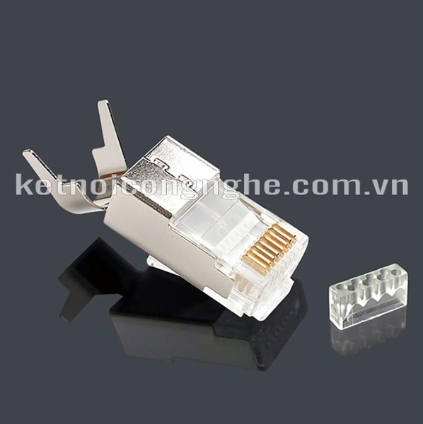 Hạt mạng kim bằng đồng mạ vàng, vỏ bằng inox,, dùng cho cat6, đặc biệt cuối đầu jack còn có 2 chiếc kẹp để giữ dây chặt hơn, chống đứt khi sử dụng thường xuyên. Hàng này cũng cần dùng kìm chuyên dụng.