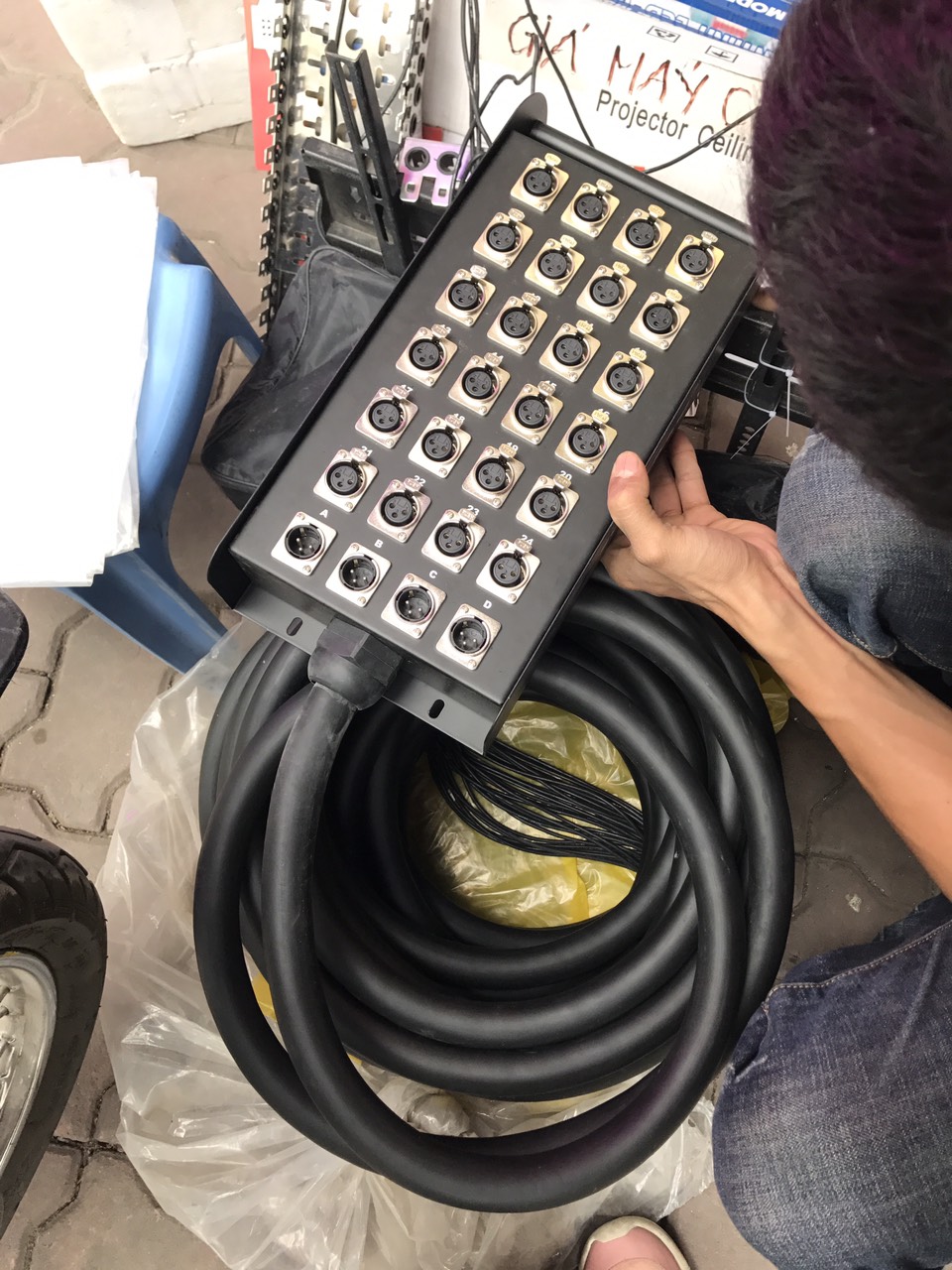 - Hộp STAGE dài 45.5m, với 20 jack XLR cái + 4 jack XRL đực trên hộp và 24 jack XRL trên dây, gồm giá đỡ, cuộn giữ dây. Với kẹp giữ dây dê dàng cho việc di chuyển và cuộn dây. Tăng độ bền và thời gian sử dụng cho thiết bị