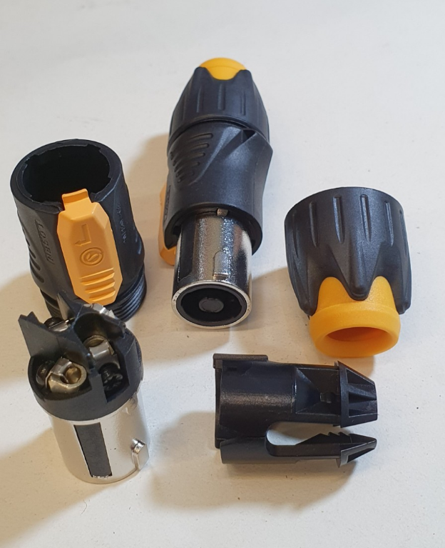 4pin speakon male, Jack cắm Loa nhưa đầu sắt speakon line 4 pole. Dùng cho dây. đường kính ≤6~12mm