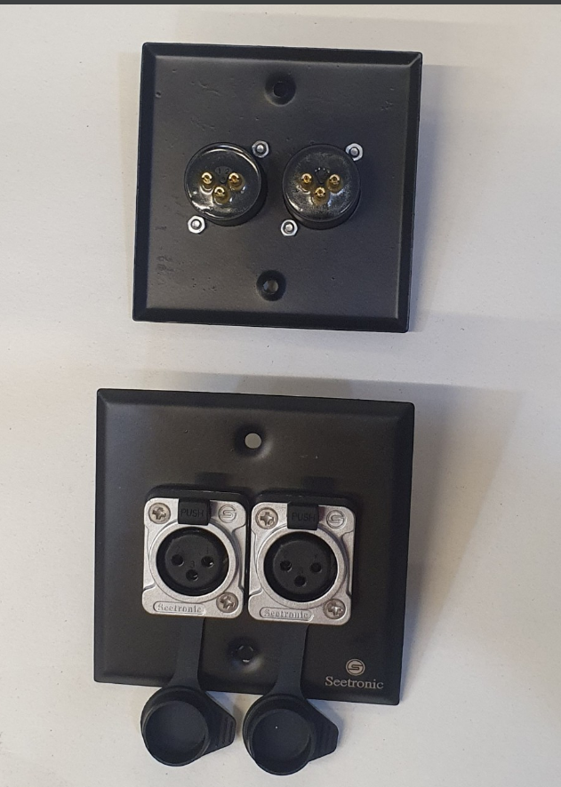 Mặt ổ cắm audio XLR chống nước. Điểm tiếp xúc là đồng mạ vàng 24K.Phía trước mặt có nắp đậy, chống nước, chống bám bụi. Hàng đủ tiêu chuẩn xuất khẩu Âu Mỹ.