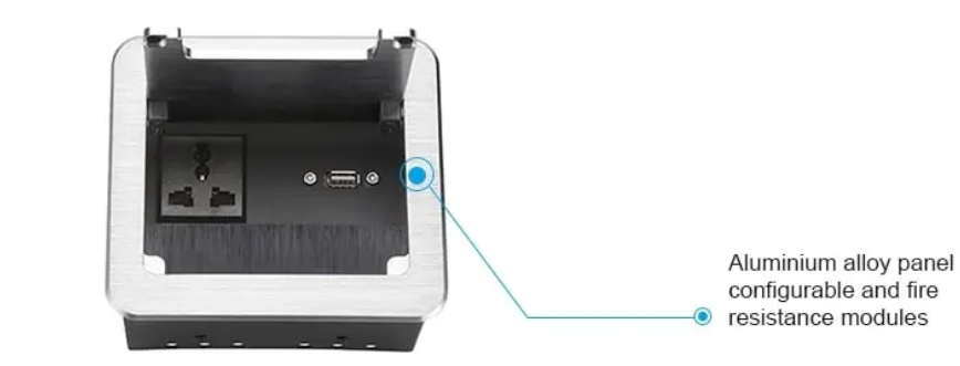ổ cắm điện đển bản , hay ổ nguồn điện, có 1 ổ cắm nguồn đa năng+ 2 ổ cắm mạng, với bề mặt thiết kê trang nhã, có thể tùy chỉnh lật lên cằm nguồn điện và mạng vào, khi không dùng đến thì đậy nắp lại vừa chống bám bụi bẩn vừa an toàn và mang lại sự gọn gàng ngăn nắp cho bàn làm viêc, Bề mặt của ổ làm từ thân nhôm hợp kim đúc thành khối rất chắc chắn và thời thượng. các hạt ổ đa năng ở bên trong có thể thay thế