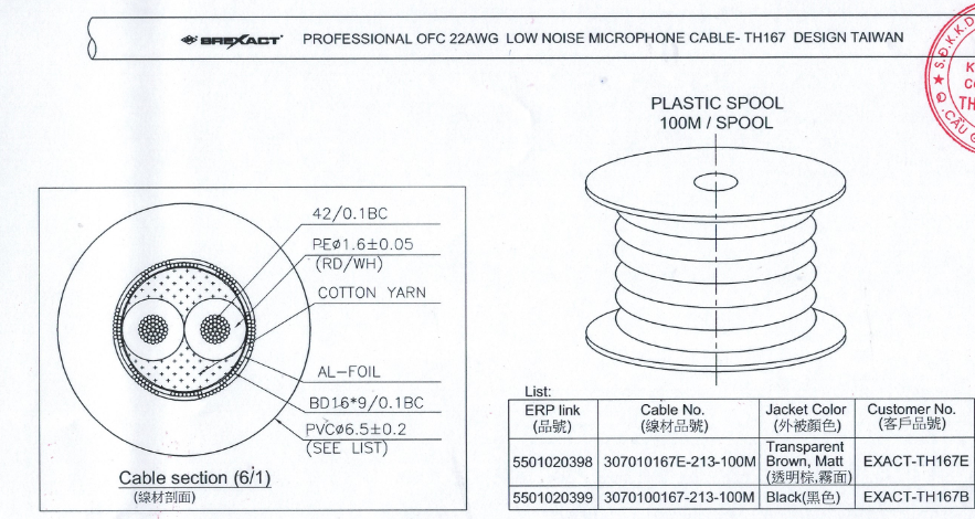 - Dây MICROPHONE EXACT-TH167 được sản xuất bởi Sunrise Taiwan với các tiêu chuẩn quốc tế xuất hàng đi Châu Âu. Hàng nhập khẩu chính hãng, giấy tờ đầy đủ hợp lệ