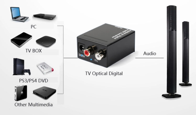 Hỗ trợ tất cả các dòng tivi. Với đầu vào là cổng Digital,Optical, Coaxial từ các thiết bị xuất như Smat Tivi, đầu thu chất lượng cao, AndroiBOX...Cổng ra chân đồng chuẩn cho tín hiệu đầu ra Audio.